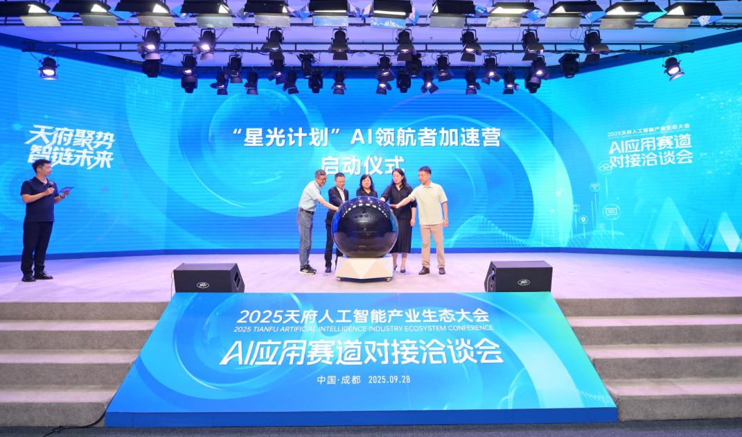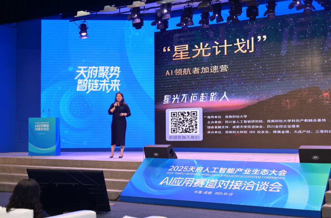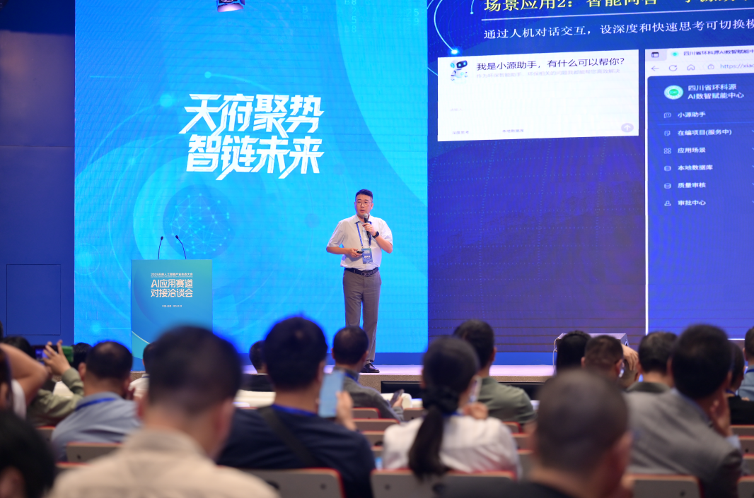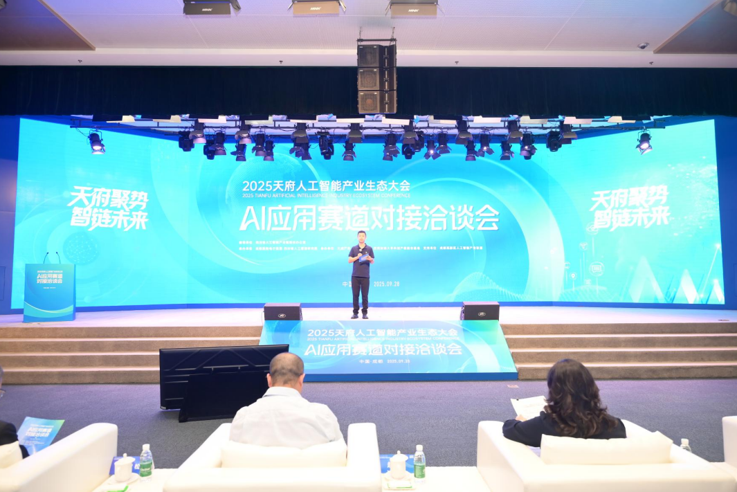 人工智能产业生态大会AI应用赛道对接洽谈会发表时间:2025-10-14 12:01 9月28日,2025天府人工智能产业生态大会分论坛——“AI应用赛道对接洽谈会”在成都高新区菁蓉汇成功举办。作为大会重头戏,洽谈会聚焦“AI赋能产业,协同共促发展”的核心议题,旨在推动人工智能与实体经济的务实对接与深度融合。 AI应用洽谈会由四川省人工智能产业链链长办公室指导,成都高投电子集团、四川省人工智能研究院 四川省科技厅等政府部门领导,人工智能产业链主企业、配套企业、AI创业家、高校科研院所等200余人参会,各方围绕AI技术在千行百业中的落地路径与协同创新机制展开深入交流,共探融合发展新机遇。